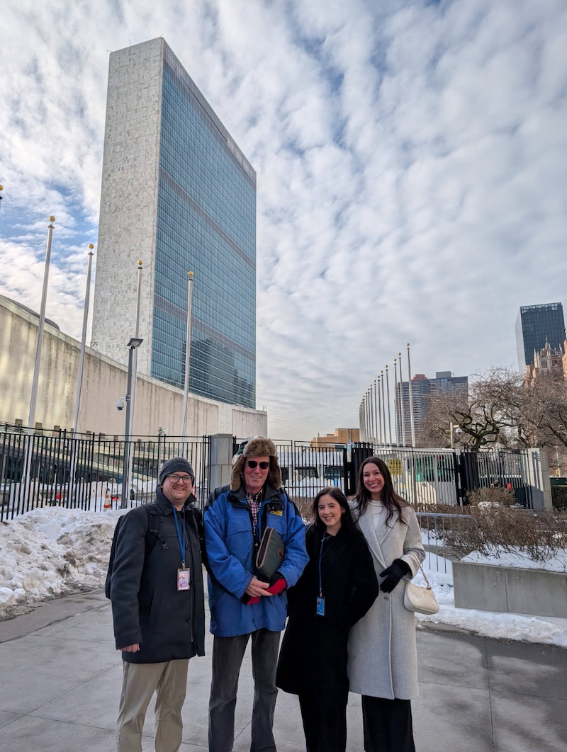 IPRA’s UN bureau after receiving their 2026 accreditation and grounds pass. From left: Matt Cossel, Jim McQueeny, board member and senior NGO representative, youth reps Annabel Prunty and Connie Herrera. Not pictured is youth rep Diya Narayan. UN accreditation is not straightforward and helped by IPRA’s global promotion of UN initiatives such as the sustainable development goals. IPRA has one of the largest NGO staffs liaising with the New York UN headquarters. |